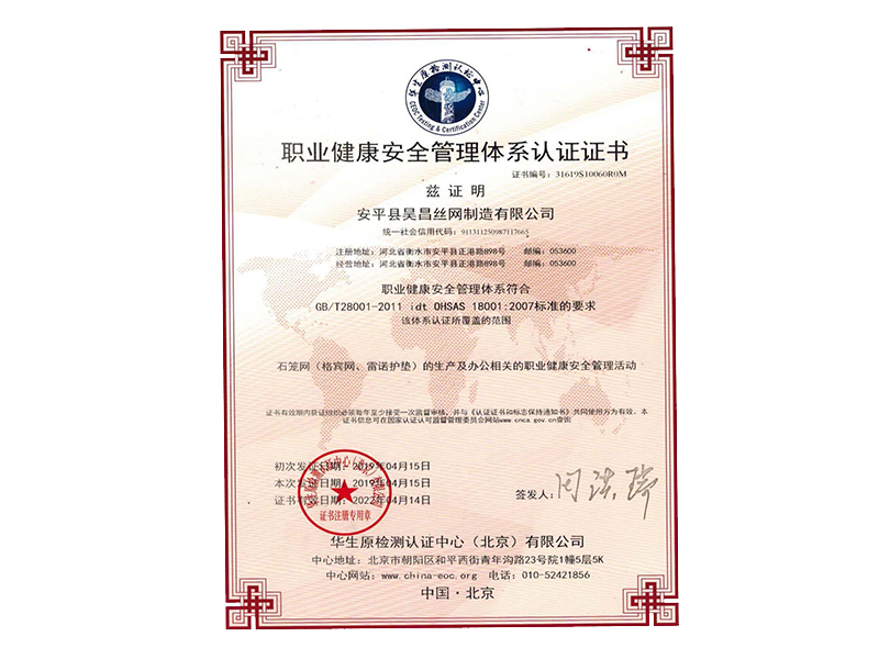 安平縣昊昌絲網制造有限公司成立于2006年,占地40000平方米,擁有生產設備二十余臺,率先引進流水線作業,是一家專業從事石籠網、格賓網、雷諾護墊生產的企業。經過不懈的努力,公司榮獲了省優產品、政府質量獎等眾多殊榮并擁有多項專利,積累了非常豐富的經驗和大量的專業化技術人才。我們已率先通過了ISO9001質量管理體系認證,并參與了三峽,南水北調,三江治理等大型堤坡防護及水利工程,歡迎來電來公司洽談。